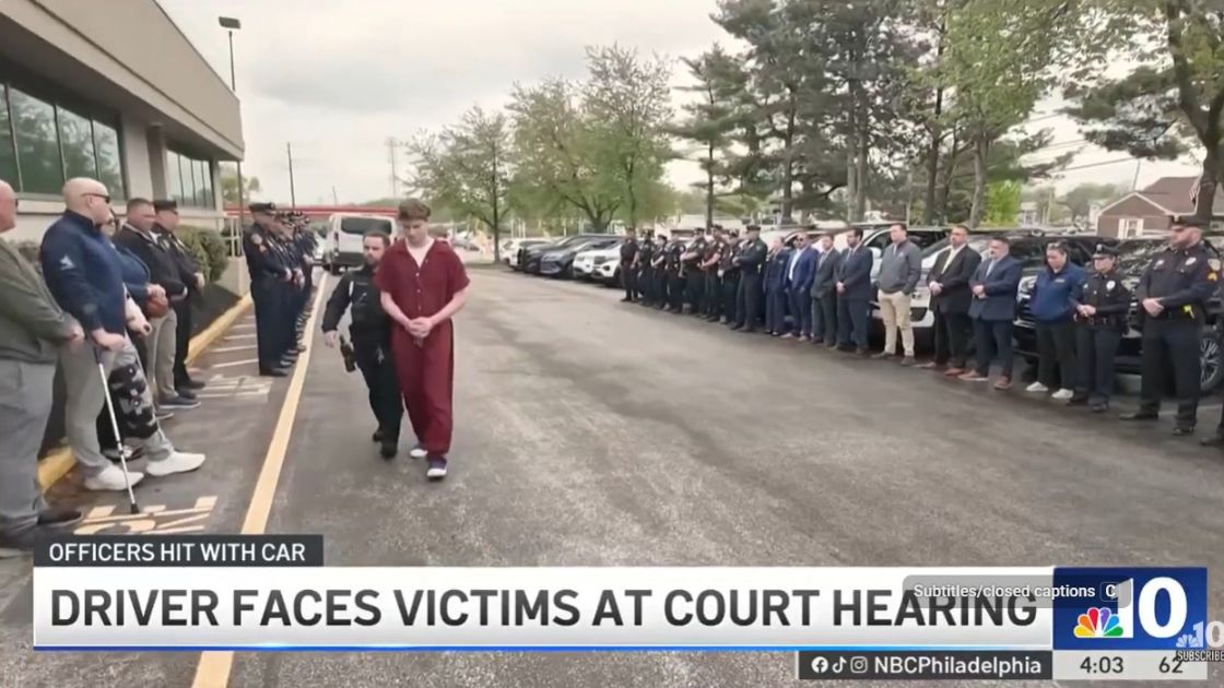 Man accused of striking Plymouth Township police officers with vehicle appeared in court. Police officers lined the parking lot outside courthouse