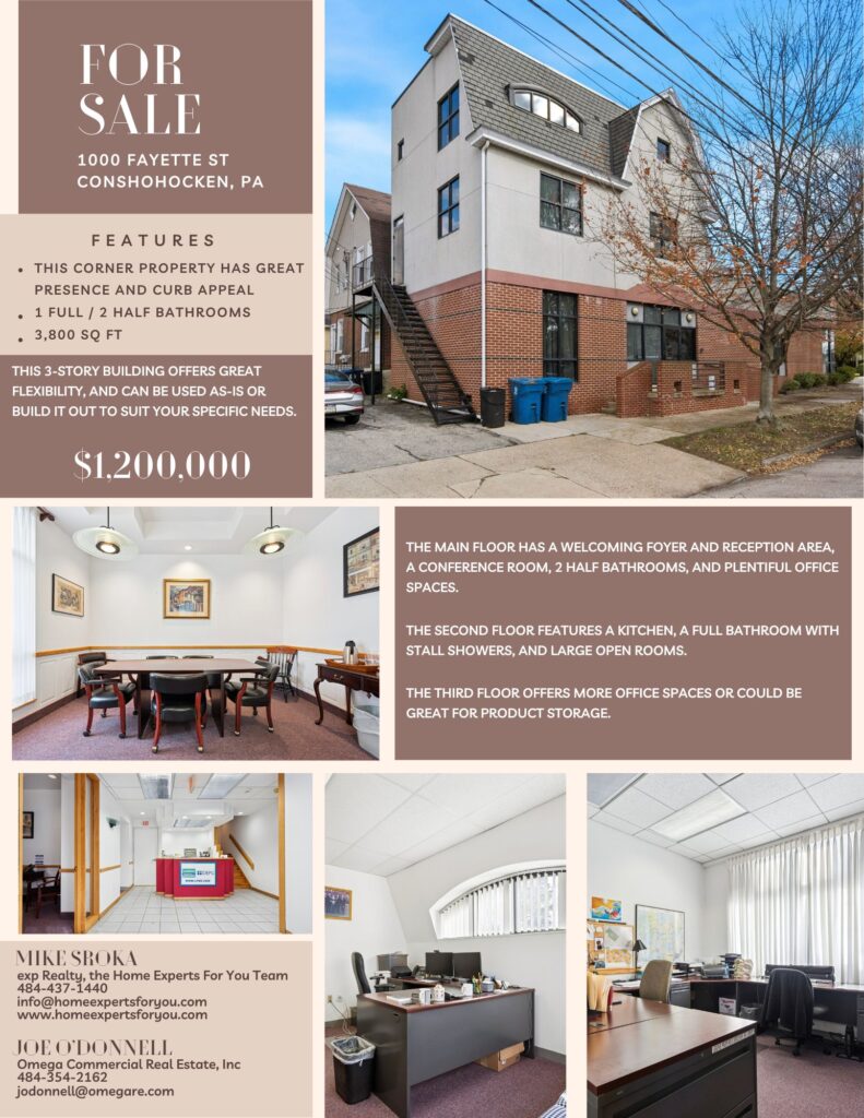 The Home Experts For You Team has listed for sale the mixed-use commercial property at 1000 Fayette Street in Conshohocken. From the listing: