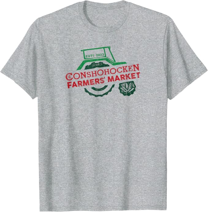 Conshohocken Farmers’ Market Merch (multiple colors available) Standard T-Shirt ($20) – Buy Now (includes kid sizes) Premium T-Shirt ($25) – Buy Now Long Sleeved T-Shirt ($27.50) – Buy Now Hoodie ($35) – Buy Now