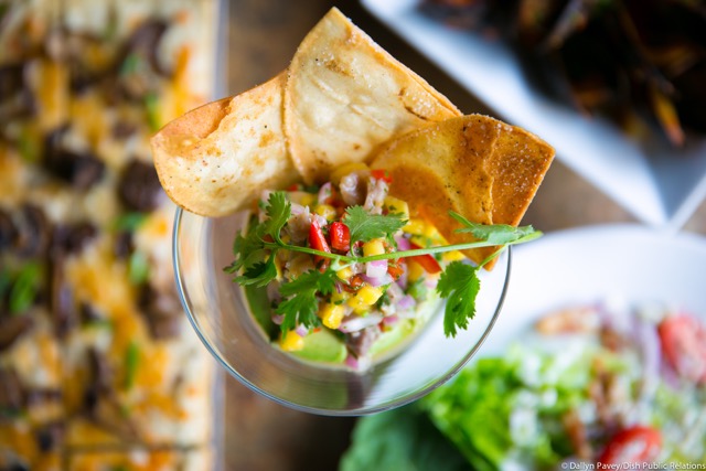 Fresh raw Ahi Tuna in lime juice, chili pepper and cilantro. Tossed with sliced avocado, tomato, onion and mango
