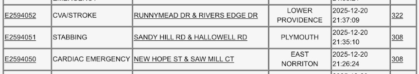 The Plymouth Township Police Department announced on December 22nd that it is currently investigating a stabbing that took place on Saturday, December 20, 2025, just after 9:30 p.m. at the Plymouth Rock Apartments at 1919 Sandy Hill Road in Plymouth Meeting (Plymouth Township).