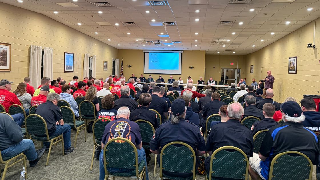 This could be a violation of the Sunshine Act. This should minimally result in an apology and should mean holding another meeting to properly offer the opportunity to attend. Many of the questions during the meeting came the small amount of concerned citizens who made it last minute. More should be offered this opportunity. Please note, almost all of the people in the photo are members of the two fire companies and the ambulance company.