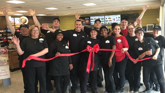 The first people in line this morning were Henry Racich and his daughter Libby. For being first in line, Wawa gave Libby a hat and a milkshake.