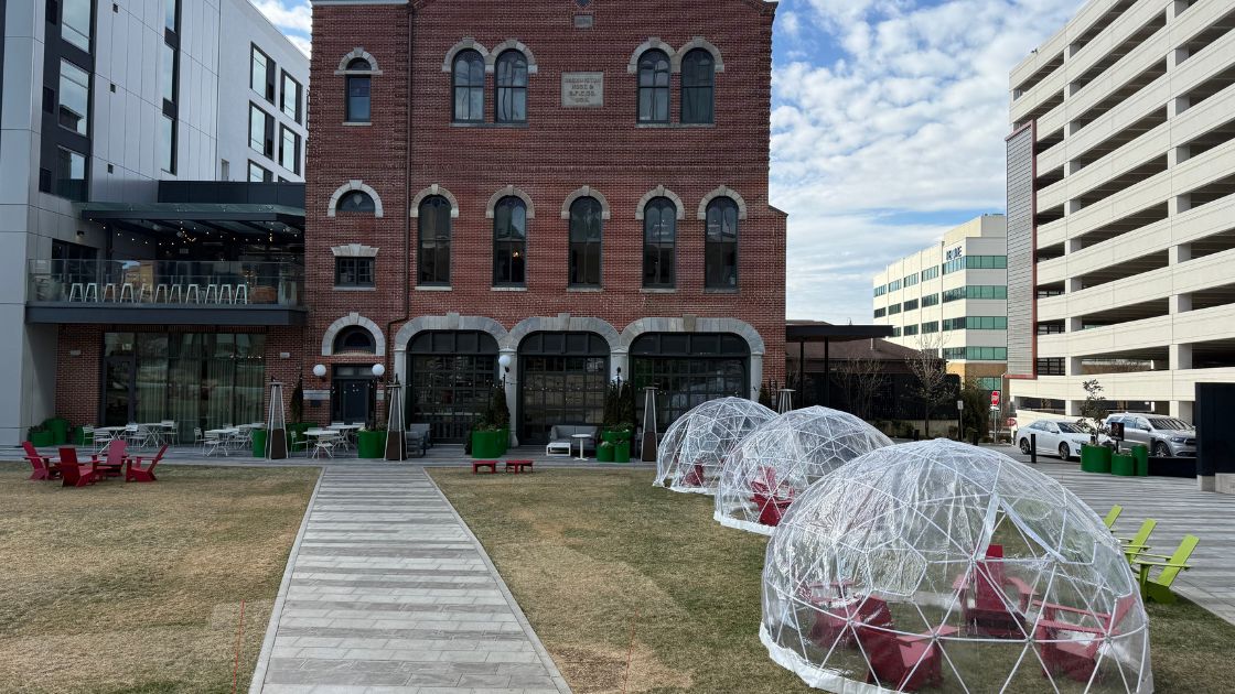 Hotel West & Main has a new outdoor dining option on the plaza. You can now reserve a heated igloo with seating for four for three hours.