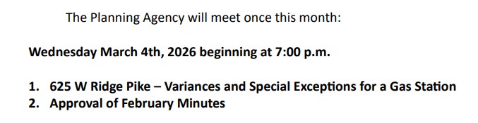 West Conshohocken does not offer a webpage with all of the applications and doesn’t offer the applications with the agendas (it does offer a solid description). It does not offer the outcome of zoning hearings on its website.