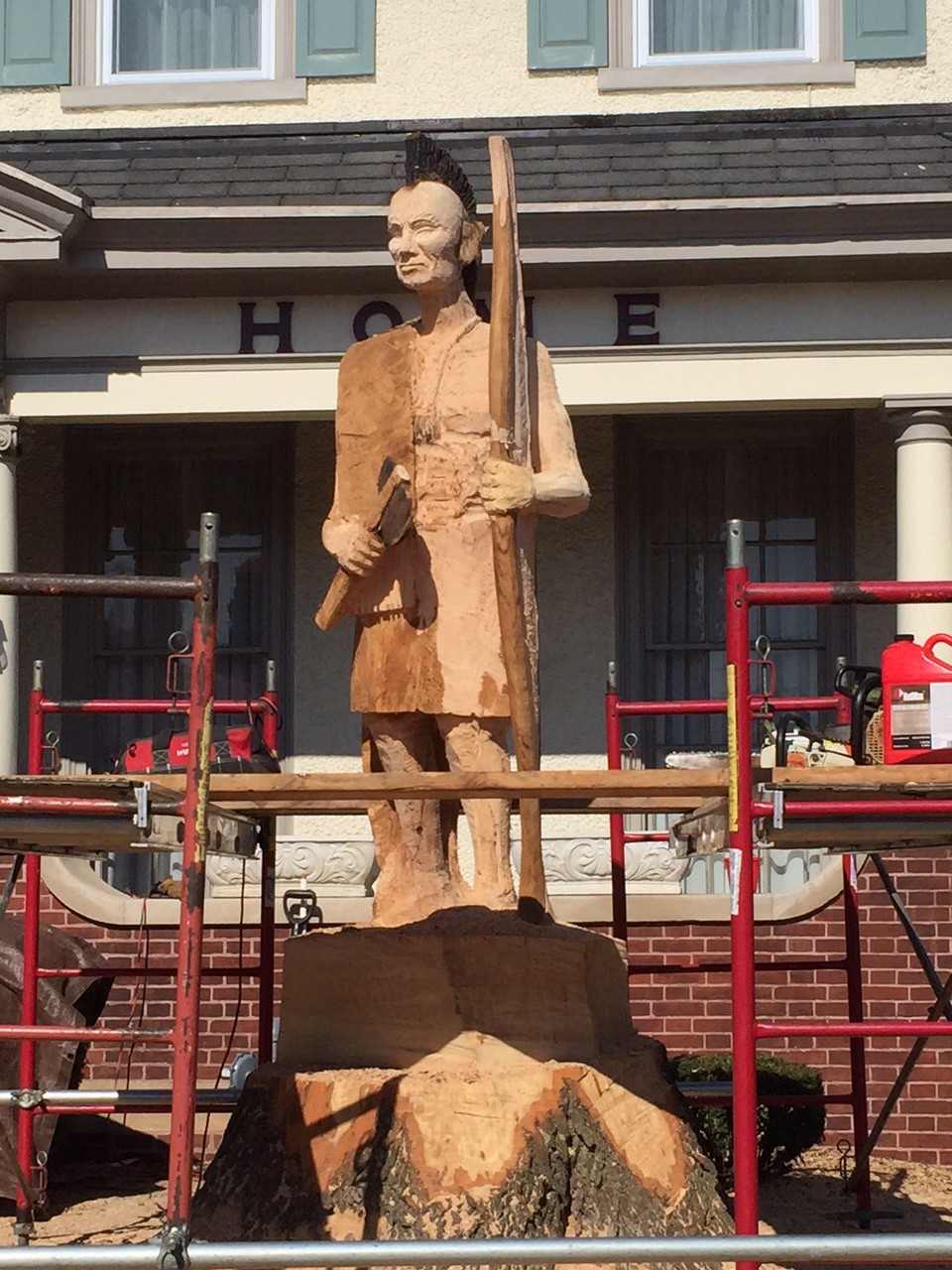 If you have driven or walked by the Ciavarelli Family Funeral Home on the 500 block of Fayette Street recently, you probably noticed two new wood carvings. The carvings were done from trees that needed to be taken down. One is of an eagle and is a tribute to the nation’s veterans. The second one, which is not completed yet, is of a Native American. The statue of the Native American is being donated to the Borough of Conshohocken and will be displayed in the new borough hall at West 4th Avenue and Fayette Street.